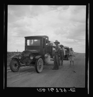 Drought refugees stopped along the highway near Lordsburg, New Mexico
