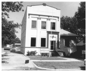 The sheriff of McAlester, Oklahoma, sitting in front of the jail. He has been sheriff for thirty years