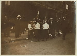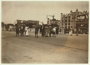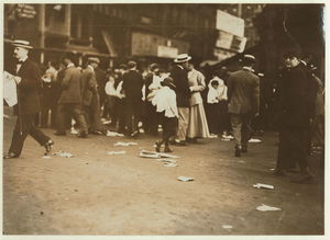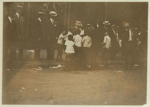 Small "Newsies" scrambling to get extras for Johnson-Jeffries Fight, Herald Square, 7 P.M. Location: New York, New York (State)