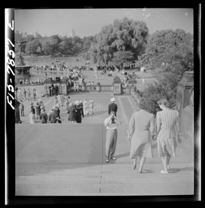 New York, New York. Sunday photographer at the mall fountain in Central Park