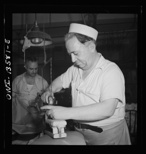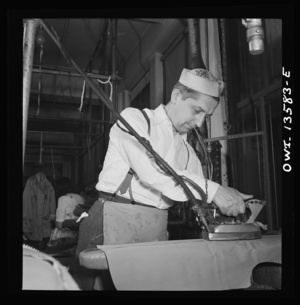 New York, New York. Garment worker in the N.M. dress shop, which is now making blouses for the Women's Army Auxiliary Corps (WAAC). He is a member of local 89 of the International Ladies Garment Workers' Union