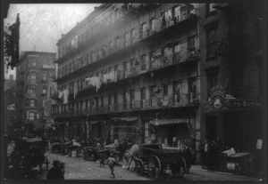 Row of tenements, 260 to 268 Elizabeth St., N.Y., in which a great deal of finishing of clothes is carried on. See photo of 2824, which shows condition of halls. See also photo 2828, one of the families at work. Location: New York, New York (State)