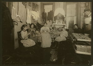 Whole family rolling cigarette cases, the mother was licking the papers as she worked. (For complete details see Miss E.C. Watson's report.) Location: New York, New York (State)