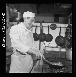 New York, New York. Chef in Marconi's Restaurant on Mulberry Street preparing New Year's dinner for the Di Costanzo family, the owners