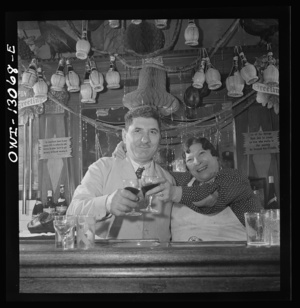 New York, New York. Mr. and Mrs. Di Costanzo at the bar of their restaurant on Mulberry Street on New Year's Eve