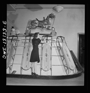 New York, New York. Toy department display at R. H. Macy and Company department store during the week before Christmas. The hobby horse above costs almost one hundred dollars