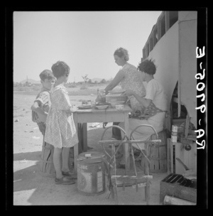 Drought refugees in Phoenix, Arizona. One of the many cases of Tennessee ex-farmers drifting around, looking for work in cotton