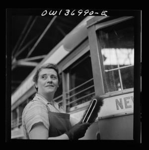 Pittsburgh, Pennsylvania. Woman cleaner at the Greyhound garage