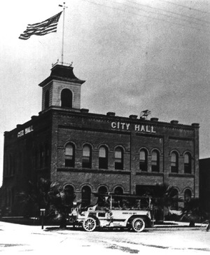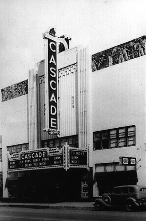 Central tower from which cable buckets carry materials used in the construction of Shasta dam, California