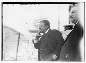 T. Roosevelt preparing to speak, outside, New York (Yonkers)