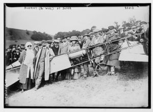 Mr. and Mrs. Bleriot, aeroplane, crowd, on field, Dover