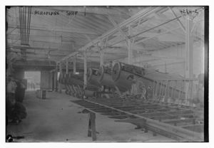 L.G. Bergdoll's aeroplane in hangar
