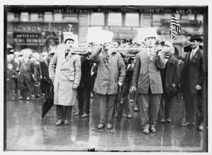Labor Day Parade, bakers carrying float of loaf of bread, New York