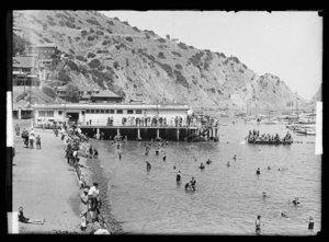 Wharf and beach, Avalon, Catalina Island, Calif.