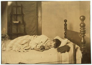 Washington, D.C. In the evening, Hugh Massman and his wife fold diapers. Joey's bureau drawer crib is moved to the side of their bed for the night