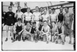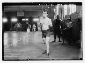 Bombardier Billy Wells, English boxer, preparing in Rye, N.Y., for fight with Al Palzer