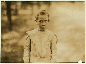 Eight-year-old Lizzie, earns 30 cents a day shucking oysters in the Dunbar Cannery. I saw her working steady all day, at top speed. Could not speak a word of English. Location: Dunbar, Louisiana.