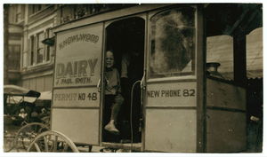 Helper on a dairy wagon. See report. Location: Bowling Green, Kentucky / L.W. Hine.