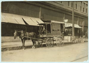 13-year-old laundry boy driving wagon. See report. Location: Bowling Green, Kentucky / L.W. Hine.