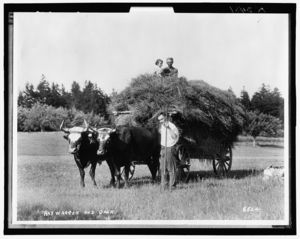 Hay waggon i.e. wagon and oxen