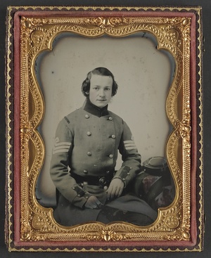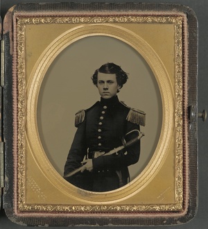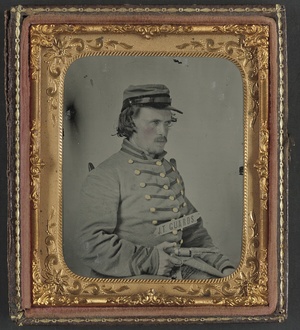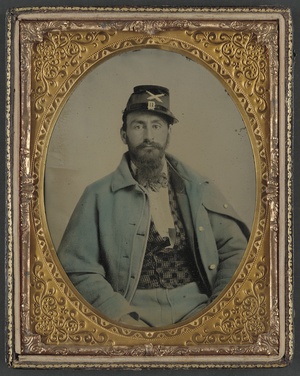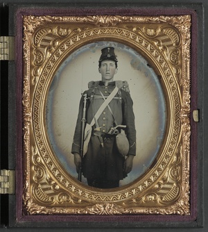 Unidentified soldier in Union uniform and Massachusetts belt buckle with drum