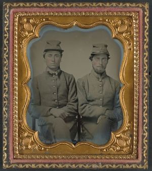 Two unidentified soldiers in Confederate uniforms and hats marked W.G.