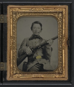 Unidentified soldier in Confederate uniform with Enfield rifle