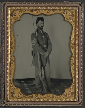 Unidentified soldier in Union uniform with bayoneted musket
