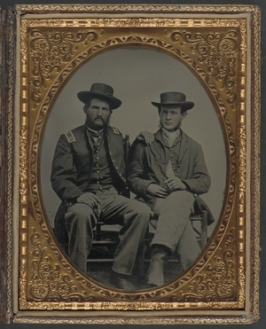 Two unidentified soldiers in Union uniforms with cigars