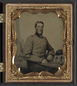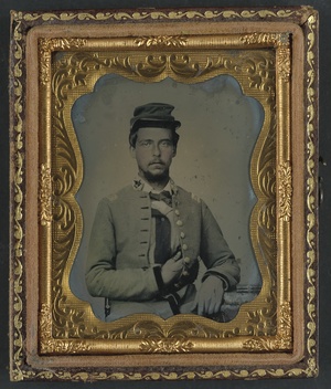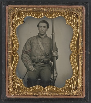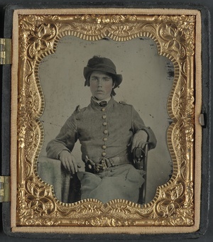 Unidentified soldier in Confederate uniform with rifleman buttons