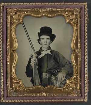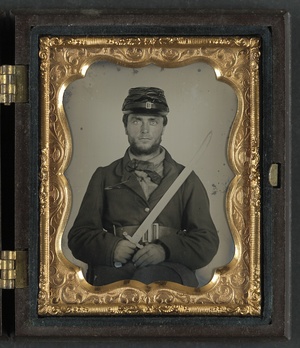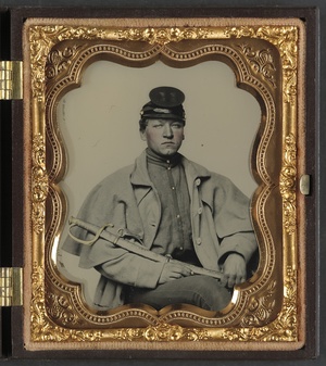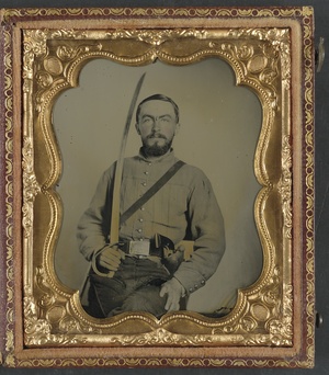 Unidentified soldier in Union rifleman uniform with saber bayonet