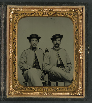 Private William Liming of Co. B, 21st U.S. Veteran Reserve Corps Infantry Regiment, and unidentified soldier in same uniform