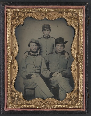 Three unidentified soldiers in Confederate artillerymen uniforms