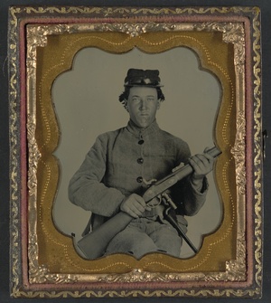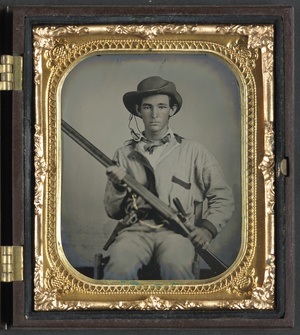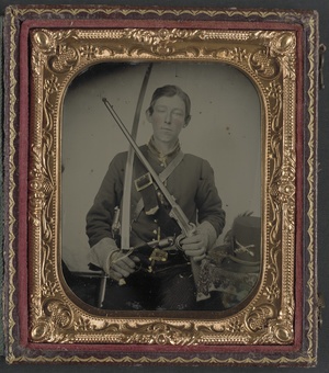 Unidentified soldier in Confederate uniform with Enfield rifle