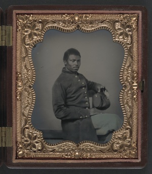 Unidentified soldier in Union corporal's uniform, infantry kepi, and U.S. belt plate with musket and cartridge box
