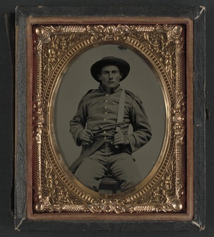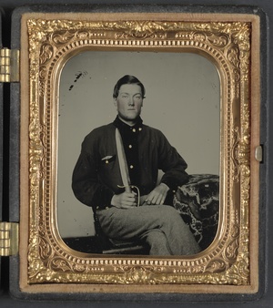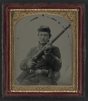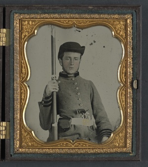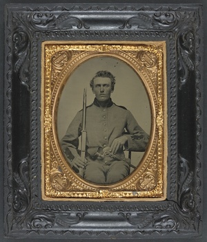 Unidentified soldier of 8th Wisconsin Infantry Regiment, with musket, bayonet, and scabbard