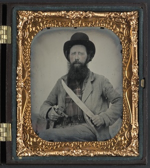 Private David Bowman of Company I, 7th Virginia Cavalry Regiment, or Private Michael Bowman of Company B and Company H, 7th Virginia Cavalry Regiment, in uniform with knife