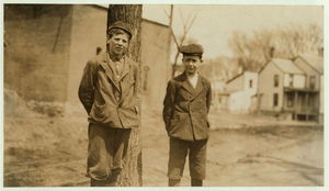 Noon hour. Herman Rette (right hand), Arsene Lussier. Both been working in Chace Cotton Mill, Burlington, Vt. for over a year. (See #730.)  Location: Burlington, Vermont.