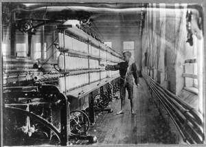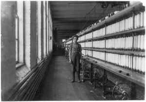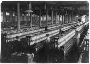 A mule-spinner and his assistant (Leopold Daigneau), Chace Cotton Mill, Burlington, Vt. May 7, 1909.  Location: Burlington, Vermont.