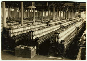 General View of #2 Spinning Room in Indian Orchard Cotton Mill, Indian Orchard, Mass.  Location: Indian Orchard, Massachusetts