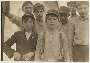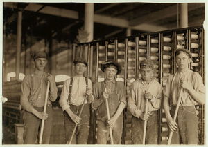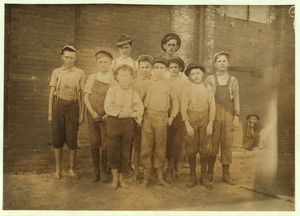 Group of Sweepers in Pell City Cotton Mill arranged by the Overseer. Superintendent of mill is also Mayor of Pell City.  Location: Pell City, Alabama.