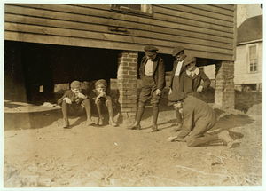 Salisbury, (N.C.) Cotton Mill. A game of marbles. All these boys work in the mill.  Location: Salisbury, North Carolina