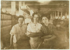 Some operatives in An Indianapolis Cotton Mill at the Noon Hour. Aug., 1908. Wit., E. N. Clopper. Location: Indianapolis, Indiana. / Photo by ...