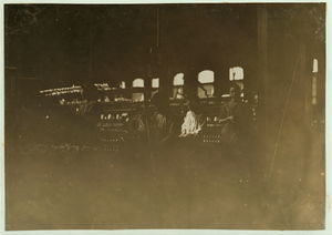 Lincoln Cotton Mill, Evansville, Ind. Boy sweeping small boy picking up and carrying away. (Bad light and shaking floors.) Location: Evansville, Indiana.