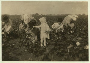 Millie, four years old and Nellie five years old. Cotton pickers on a farm near Houston, Millie picks eight pounds a day and Nellie thirty pounds. This is nearly every day. Home conditions bare and bad. Location: Houston vicinity, Texas.