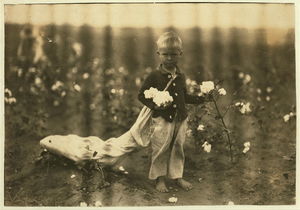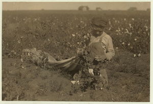Lloyd McMahan seven year old cotton picker on a farm near McKinney. "School hasn't begun yet." Usually it does not begin until picking is over. The whole family picks - nine members. Home conditions are good. Location: McKinney vicinity, Texas.