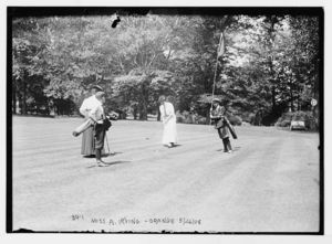 Miss A. Irving, Orange, playing golf, Essex Country Club golf tournament