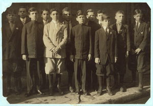 Group of cash boys in Holmes Department Store showing the youngest workers there and typical type of conditions in New Orleans department stores. Location: New Orleans, Louisiana.