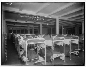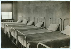 Crowded dormitory (one wall) in Training School for Deaf Mutes. See Gibbons report. Location: Sulphur, Oklahoma / Lewis W. Hine.