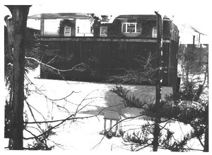 Looking across rows of corn, cliff in background, "Corn Field, Indian Farm near Tuba City, Arizona, in Rain, 1941."
